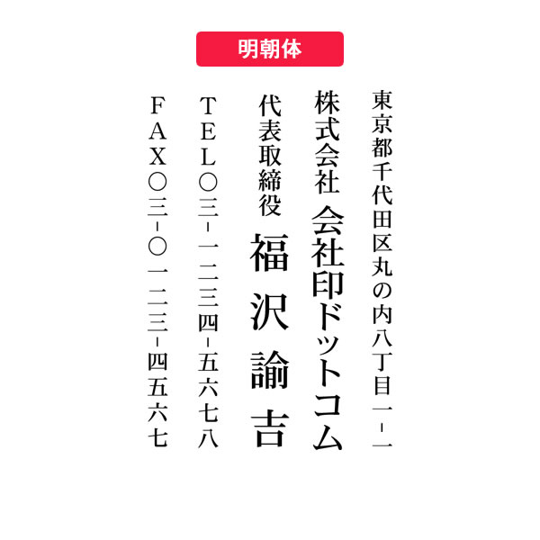 分割ゴム印 3行目の表記名 (例 : 代表取締役 〇〇〇〇 7~8.5mm)