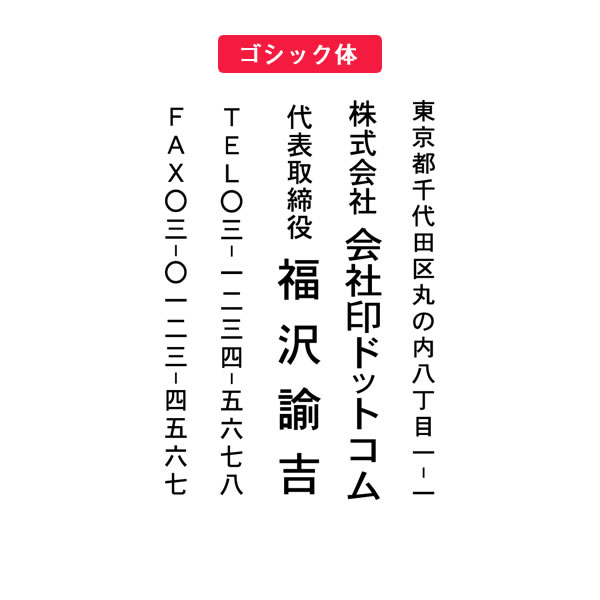 分割ゴム印 3行目の表記名 (例 : 代表取締役 〇〇〇〇 7~8.5mm)